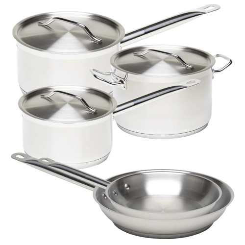 enware Stainless Steel Saucepan are available in a range of assorted sizes. Each pan is manufactured from 18/4 Stainless steel. Flow formed, satin washed inside and out with hard wearing, durable riveted handles these stainless steel saucepans are ideal for commercial kitchens and catering environments.