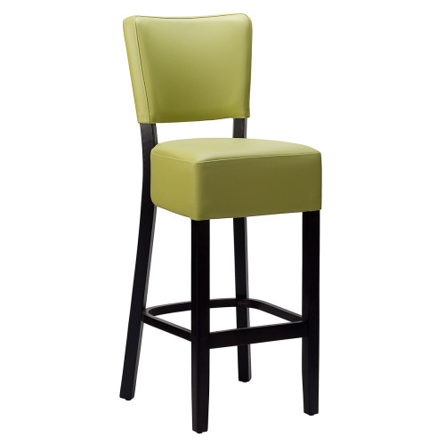 The seat and backrest are upholstered in a lime green Veneto faux leather, providing both comfort and durability, complemented by an elegant black stain finish.