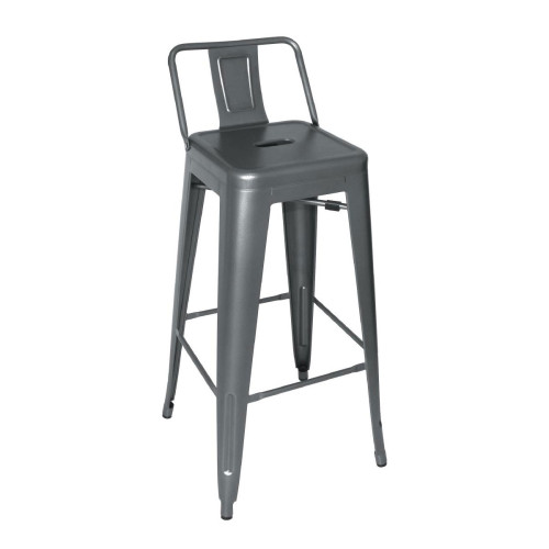 Bolero Bistro Steel High Stool with Backrest Gun Metal Grey (Pack of 4)