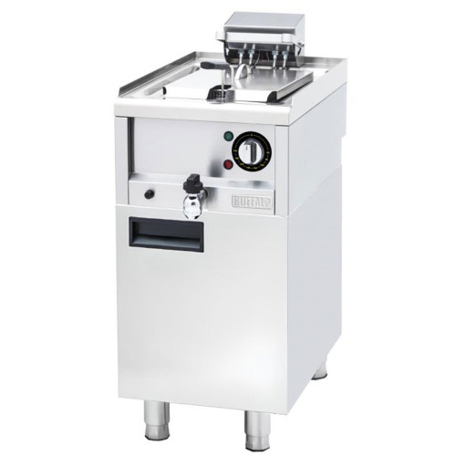 The Buffalo 600 Series fryer is easier to clean too, with strong stainless steel construction throughout and simple hinged elements which maximise access to the tank. Plus, the front-mounted oil drain tap ensures safe, effortless draining of oil - just open the tap and the fryer will drain.