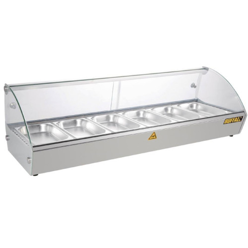 Stylishly showcase and hold your hot food selection with the Buffalo heated display unit. At nearly 1.2 metres wide, there's space for up to six 1/3rd size gastronorm pans, giving you plenty of room to offer a wide variety.