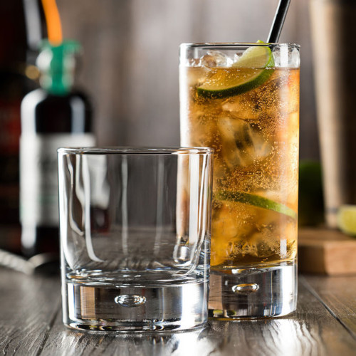 Featuring a slim, straight-sided silhouette and bubble base design, Utopia Centra Cocktail Tumblers are the perfect glass for creating stylish drink service. Utopia Centra glasses are manufactured from high-quality glass, durable for every-day commercial use in bars and restaurants. They are commercial dishwasher safe.