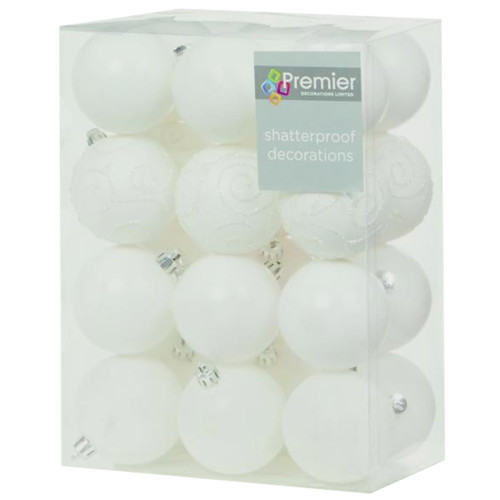 Christmas Baubles Mixed Finish 60mm White (Pack of 24)