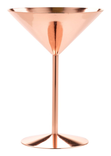 Classic copper martini glass, stylish and innovative copper designed glass which provides a unique alternative to traditional glassware which looks great for serving cocktails, desserts and making food presentations. Features a classic martini glass design with a vintage copper finish. Constructed from stainless steel, which provides good resistance to staining and maintains an excellent finish.
