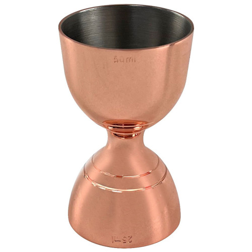 Elevate your bartending skills with the classic copper bell jigger by Beaumont. This bar essential ensures consistent shot measurements with its double-ended design, featuring precise internal markings. Pouring is a breeze, thanks to its wide opening. And, with an hourglass shape, you can flip the jigger easily – perfect if you like putting on a show whilst making cocktails.