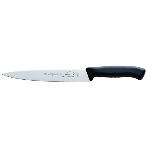 Premium quality Pro-Dynamic slicer by Dick designed for use in all cooking areas. It features a quality blade and a solid hygienic black handle to prevent contamination of foods.