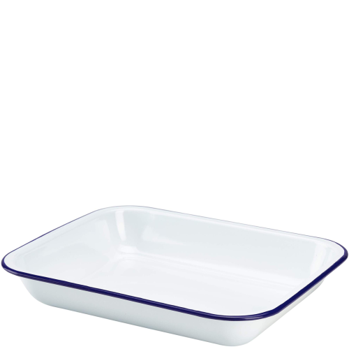 Classic White And Blue Enamel Finish Provides A Stylish And Retro Addition To Food And Table Presentation. GenWare Enamel Trays are perfect for presenting food to your customers. They bring a traditional look to your table tops, while also adding character. Even better when used with our greaseproof paper.