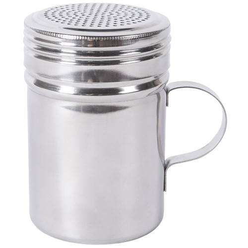 Great for adding a dusting of flour, icing sugar and other fine powdered ingredients to your recipes. Stainless steel design with a convenient handle and screw-on perforated lid.