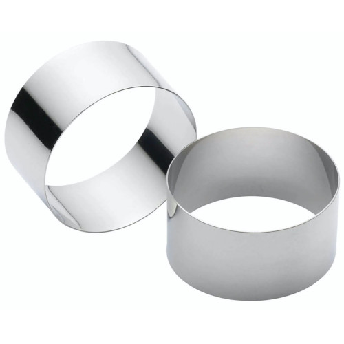 Stainless steel food preparation rings, ideal for cooking and serving hot and cold, sweet or savoury individual portions, such as individual cheese cakes, pates, mousse, and rosti.