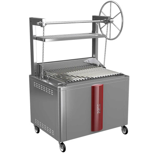 The Kopa Parrilla Argentine Charcoal Grill features a huge 930 x 735mm cooking area and large upper holding rack, great for high volume barbecue food production. Lift and tilt mechanism with removable V-groove grids for ultimate flexibility. The lift mechanism supports a range of heights and tilt angles.