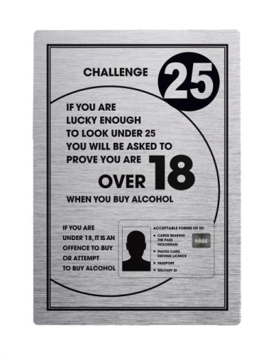 Complete with self-adhesive pads for easy fixing. This sign complies with the latest UK Licensing laws.