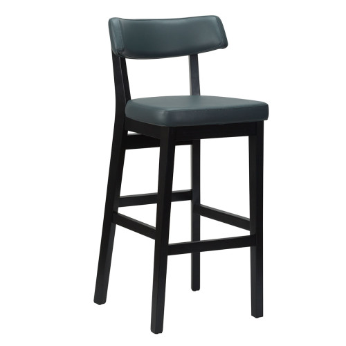 Featuring a sleek profile seat and an elegantly curved back, the stained and lacquered black frame pairs perfectly with the iron grey veneto faux leather, providing elegance, comfort and durability.