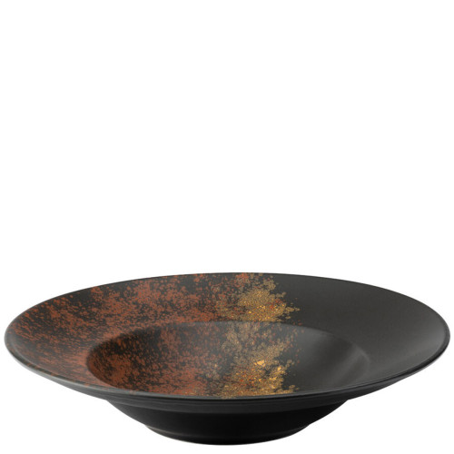 Oxy is a broad collection with oriental overtones. Based upon a dark satin glaze each piece is enhanced with hand decorated fiery tones adding drama to the serve.