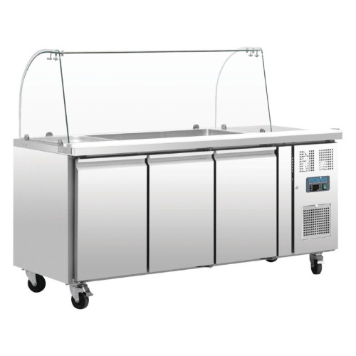 Polar U-Series 3x GN 1/1 Saladette Counter 3 Door + Sneeze Guard 358 Litre