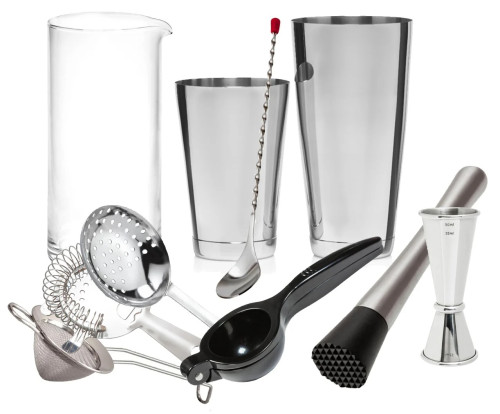 Professional Barware Cocktail Gift Set 10 Piece. Add a touch of style to your home bar with this stylish stainless steel cocktail set. If appearance is important to you and you want your cocktail kit or bar to look the part, then this is the set for you.