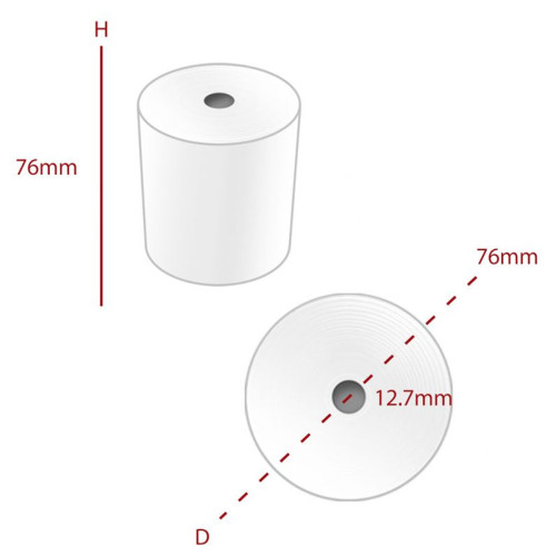 Single Ply Paper Rolls 76 (width) x 76 (diameter) x 12.7mm (core). 20 rolls per box. Used as Till Rolls / Cash Register Rolls and as Kitchen Printer Rolls in various machines including Citizen, Epson, Samsung and Star. Nb This product will require an Ink Ribbon / Cassette, please refer to your Compatibility List to check your requirements.