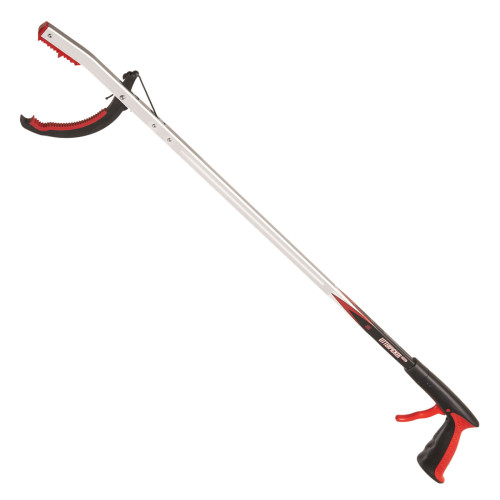 Commercial Heavy Duty Litter Picker with Soft Grip Handle 82cm Simple trigger action with a single moving claw. Ideal for tidying up litter in outside spaces whilst maintaining health and safety standards for staff. Hard wearing and durable stainless-steel body construction with ergonomic ABS plastic grip handle and trigger. Spring-loaded operation for easy grabbing of rubbish and litter. Great for easy litter collection making litter picking an ease. Long 82cm reach prevents operator from needing to bend.