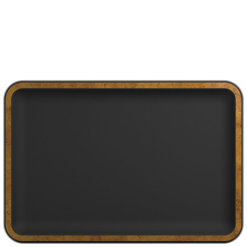 Our beautiful and practical rectangle matte black with a copper rim melamine tray, allows you to display your food on a 100% food safe melamine platter. The Utah matte black with copper rim melamine rectangle tray measures 340x230x20mm is 100% food safe and extremely durable, making it the perfect partner to enhance your food display. With a Matte black finish and a copper effect rim, this Utah tray is truly an eye-catching food displayware. Ideal for both ambient and chilled food displays our totally unique Utah matte black and copper rim trays are perfect for presenting cakes, sandwiches, pastries, croissants, cheese and much more. Great for buffet, front of house or table top.