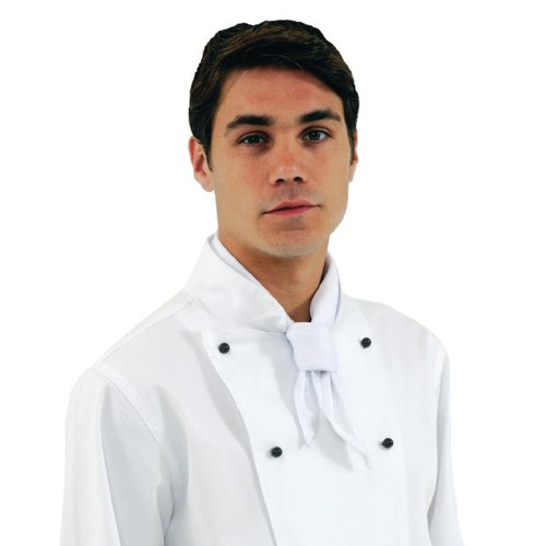 This white chef neckerchief will help to keep you feeling cooler in the kitchens when worn under the collar of a chef jacket. The neckerchief also matches our range of chefs trousers, aprons and hats.
